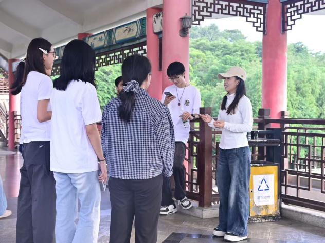 活动伊始,大家走进狮山公园垃圾分类宣教基地。展区内,景观小品、环保手工作品与科普展板巧妙融合,将垃圾分类知识转化为直观生动的场景。随着讲解员的细致讲解,党员们认真聆听、不时交流,不仅深化了对垃圾分类意义的理解,还主动分享日常践行环保的小妙招,在互动中筑牢生态保护思想根基。