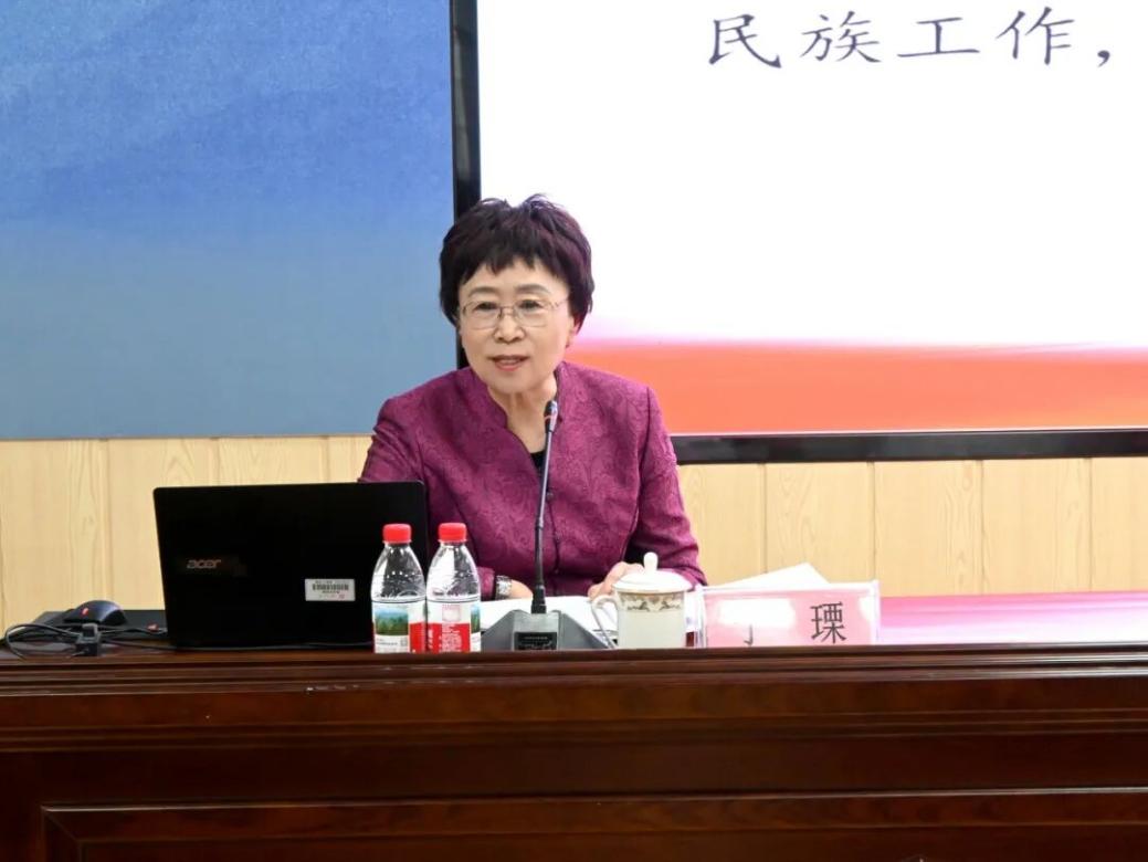 报告中,于瑮引经据典,通过一系列生动的历史故事,阐释了中华民族共同体意识的丰富内涵、民族融合的历史脉络和民族发展的时代需求,阐明了铸牢中华民族共同体意识在民族团结中的重要作用,剖析了文化认同与中华民族共同体意识的关系。在此基础上,她系统论述了铸牢中华民族共同体意识的实践要求,强调要筑牢共同的理想信念,培育共同的价值观念;要用共同目标汇聚力量,新征程上一个民族也不能少;要坚定文化自信,扎实推进文化保护传承利用工程;要促进民族交往交流交融,共建共享中华民族共有精神家园、共同富裕幸福家园、守望相助和谐家园、宜居康寿美丽家园、边疆稳定平安家园。