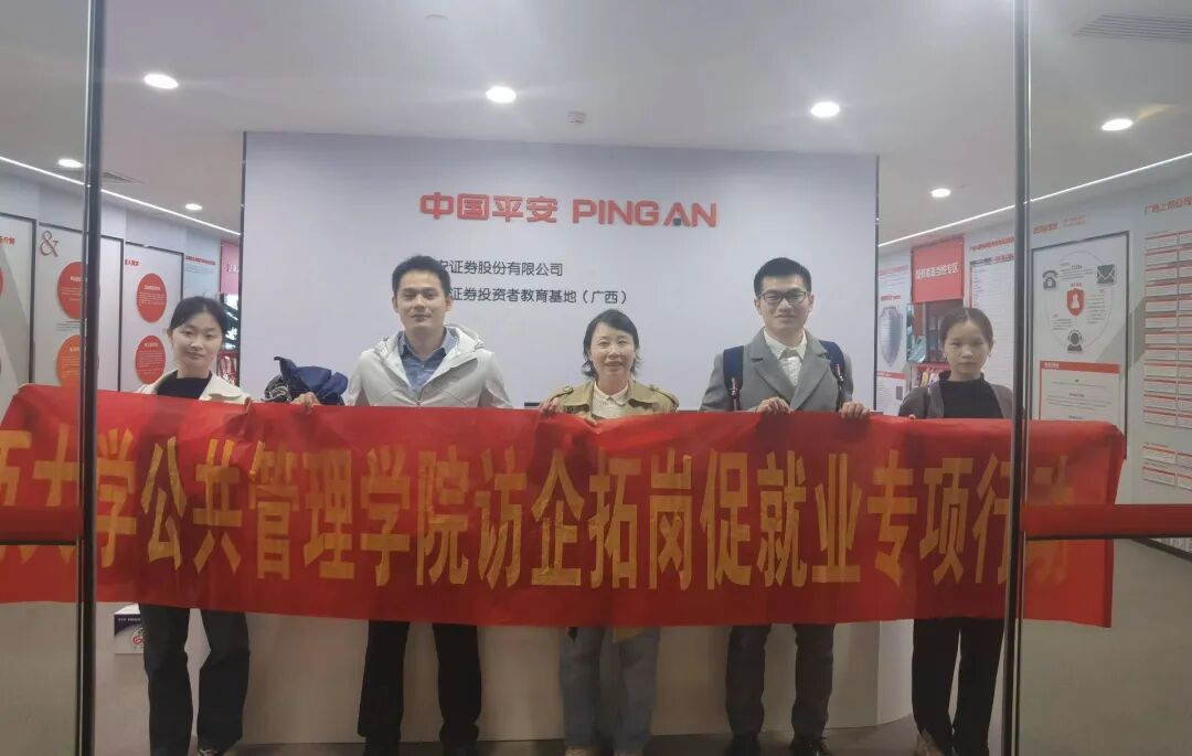 3月9日上午,我院组织师生代表前往广西途昊集团有限公司和平安证券股份有限公司广西分公司开展访企拓岗促就业专项行动。本次活动由学工组辅导员黄文静带队,多位学生代表共同参与,通过与行业资深从业者进行座谈与经验分享,为我院学子搭建直面行业前沿的交流平台,为他们进一步提高工作水平,顺利进入社会提供坚实基础。