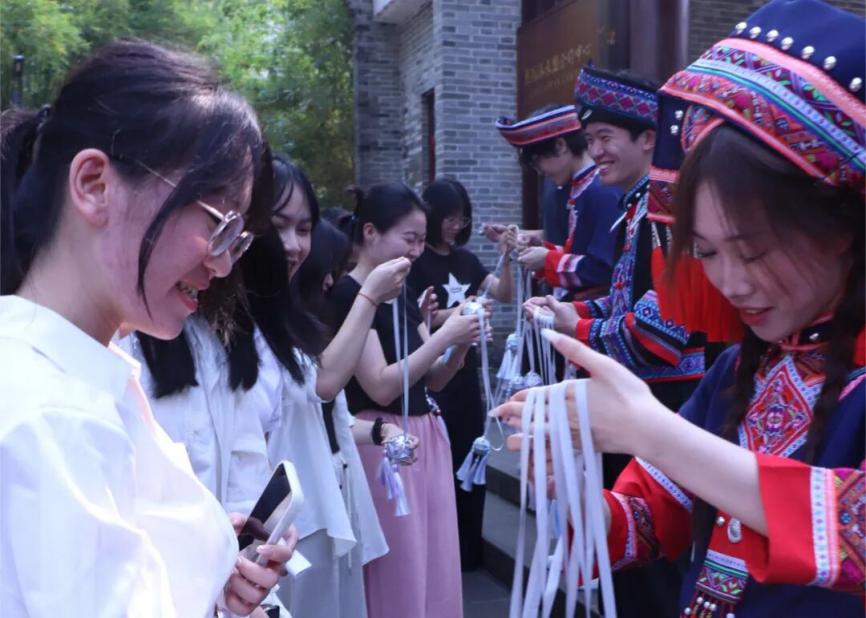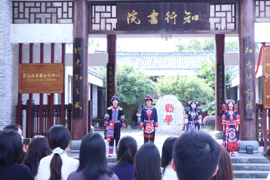 活动在学生演唱的一首“我们的节日”中拉开序幕。歌声悠扬传情,绣球灵动寄意,表演者们以绣球为媒,将壮乡人民的吉祥祝福与春日的融融暖意传递给现场每一位师生,让民族文化在互动传递中焕发蓬勃生机。