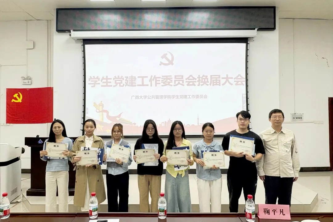 10月21日下午,广西大学公共管理学院第十届学生党建工作委员会换届大会(下文简称党建会)在学院101会议室召开,院党委专职组织员鞠平凡出席本次会议,会议由党建会副主任赵甜甜主持,党建会全体成员及各学生党支部支委成员作为代表参会。